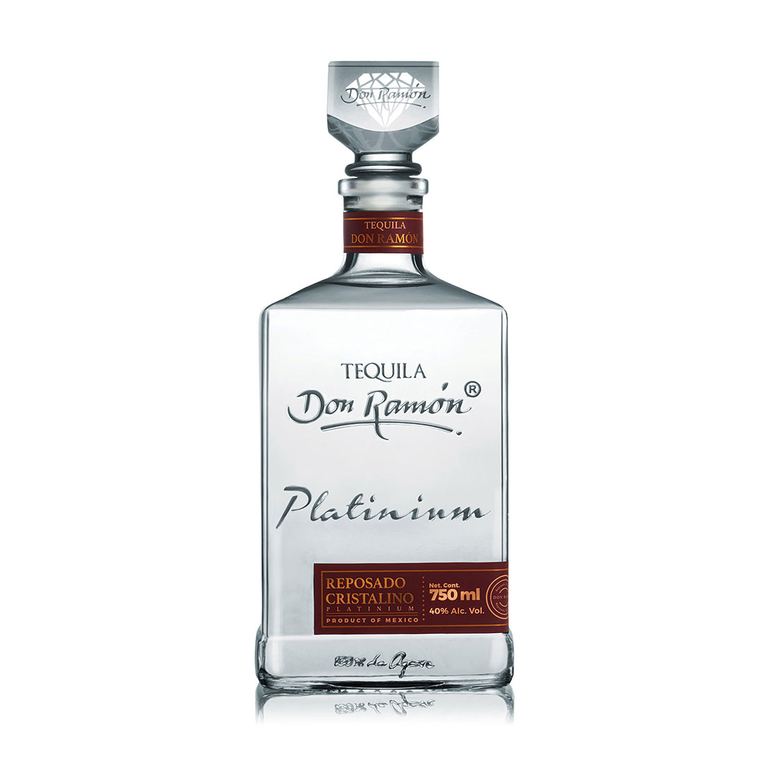 Don Ramon Reposado Cristalino – equila Don Ramón Platinium Cristalino Reposado is double-distilled and rested in American and French oak, resulting in a smooth, delicate taste and robust profile.Made from 100% Blue Agave from the highlands of Jalisco, Mexico, this cristalino clear spirit can be described as soft, medium bodied, and woody with complex gourmand notes. The aging process allows the spirit to mellow, taking on a deep and complex character, with a balanced herbal and citrus finish.After maturation in oak, a complex filtration process removes the most of the liquids golden color and piquancy. This results in an exquisitely smooth taste, and long finish calling for easy-sipping and exquisite cocktails.